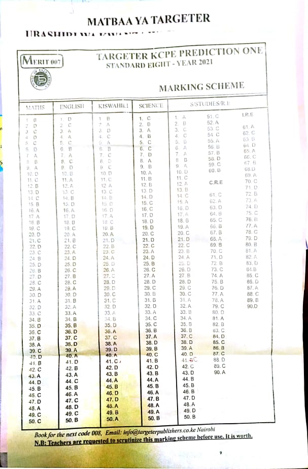 Download 2021 TARGETER MERIT 007 STD 8 Exams with Marking Schemes