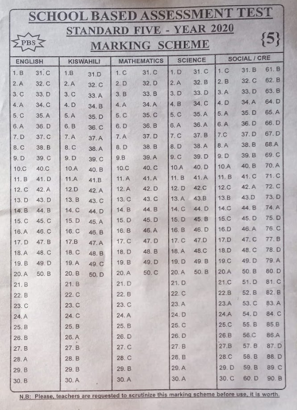 2021 Standard 5 PBS Exams and Marking Schemes