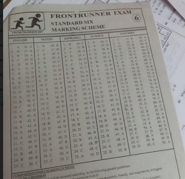 Download Standard 6 Term Two 2021 Primary School Exams and Marking Schemes (Answers)